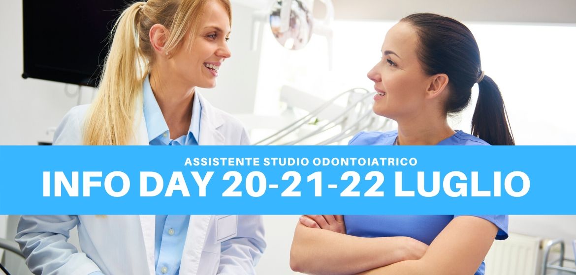 Nei giorni 20-21-22 luglio, Online o presso la nostra sede di Lucca, in Viale San Concordio 135 (a tua scelta), si terrà un Info Day di presentazione della III edizione del Corso per Assistente studio odontoiatrico (ASO), corso riconosciuto dalla Regione Toscana e che prevede il rilascio della Qualifica Professionale